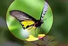 金裳凤蝶是凤蝶科、裳凤蝶属的动物。金裳凤蝶身体呈黑色,头、颈和胸侧有红毛,腹部有黑黄两色相间条纹,雄蝶前翅黑色,具黑天鹅绒光泽,各脉两侧灰白色,后翅金黄色,各室外缘有等腰三角形黑斑1枚,斑内侧有晕,…全部>>