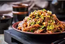 主料:牛肉500克 调料:花生油100克,大葱20克,姜15克,料酒10克,白砂糖25克,芝麻5克,盐10克,辣椒10克,花椒5克,味精2克,辣椒油25克全部>>