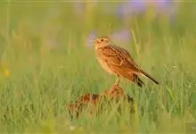 云雀,是雀形目百灵科云雀属鸟类。云雀上体大都砂棕色,各羽纵贯以宽阔的黑褐色轴纹;上背和尾上覆羽的黑褐纵纹较细,棕色因而较显著;后头羽毛稍有延长,略成羽冠状;两翅覆羽黑褐,…全部>>