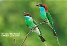 绿喉蜂虎是佛法僧目、蜂虎科的小型鸟类,共有9个亚种。身长22-25厘米,翼展29-30厘米,体重15-20克。喉绿色,额部、头顶至上背为锈红色,其余上体均为亮绿色。中央尾羽延长且端段狭细,…全部>>