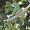 蓝须夜蜂虎是佛法僧目、蜂虎科的鸟类,体长约30厘米,是绿色林栖型蜂虎,蓝色的胸羽蓬松,嘴厚重而下弯。成鸟顶冠淡蓝,腹部棕黄带绿色纵纹。尾羽腹面黄褐。亚成鸟全身绿色。喉、胸部中央的羽甚长和亮色;该物种…全部>>