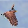 金雕:属于鹰科、雕属的猛禽。体长76-102厘米,翼展达2.3米,体重2-6.5千克。雌雄同色。未成年时,头、颈黄棕色;两翼飞羽除了最外侧三枚外基部均缀有白色,其余身体部分暗褐色;羽尾灰白色,…全部>>