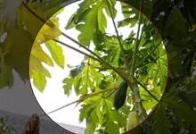 番木瓜,番木瓜科番木瓜属的常绿软木质小乔木,高达10米,具有乳汁;茎不分枝或有时于损伤处分枝;叶大且聚生于茎顶,近似盾形,叶柄中空;花单性或两性,有些品种雄株偶尔生两性花或雌花,…全部>>