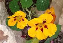 旱金莲是旱金莲科旱金莲属蔓生一年生草本植物。叶互生,叶柄向上扭曲,盾状,叶圆形,具波状浅缺刻,下面疏被毛或有乳点;花黄、紫、桔红或杂色,花托杯状,花瓣为圆形,边缘具缺刻;果实为扁球形;花果期6-10月,…全部>>
