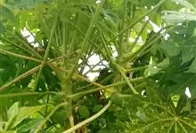 番木瓜,番木瓜科番木瓜属的常绿软木质小乔木,高达10米,具有乳汁;茎不分枝或有时于损伤处分枝;叶大且聚生于茎顶,近似盾形,叶柄中空;花单性或两性,有些品种雄株偶尔生两性花或雌花,…全部>>