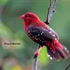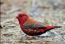 红梅花雀小型鸟类,体长9-10厘米。雄鸟通体朱红色,背、肩、胸等满布白色小斑点,两翅和尾黑褐色均具白色端斑,嘴红色,脚蜡黄色。雌鸟上体淡褐色或赭褐色,翅上中覆羽、大覆羽和内侧飞羽末端具白色斑点,…全部>>