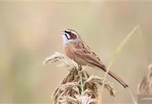 栗斑腹鹀:属小型鸣禽。体重19-25克,体长145-167毫米。头顶至背栗红色,眼先和颧纹黑褐色,黑色颧纹上还有一白纹,耳羽褐色或灰褐色,眉纹白色或灰白色。背、肩具黑色纵纹,腰至尾上覆羽砖红色无纵纹,…全部>>