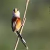 点胸鸦雀是莺科、鸦雀属小型鸟类,体长18-21厘米。头顶至枕橙棕色,嘴橙黄色、短而粗厚,脸皮黄色,耳覆羽和颊后部黑色,眼圈白色。上体棕褐色。颏黑色,其余下体淡皮黄白色,喉和上胸具黑色矢状斑。…全部>>