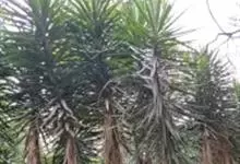 象腿丝兰是百合科、丝兰属多年生常绿小乔木或灌木。茎干粗壮直立,棕褐色。叶窄披针形,末端急尖、锋利。圆锥花序,9-10月开花,白色。蒴果,肉质。原产北美温暖地区,世界各地都有栽培。性喜阳,也耐阴,耐旱,…全部>>