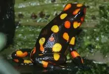 箭毒蛙,是无尾目箭毒蛙科箭毒蛙属动物。箭毒蛙体形较小,一般长1-6厘米,身上的颜色多为黑色与红色、黄色、橙色、绿色等;皮肤内有粘液分泌腺,能使皮肤随时保持湿润;四肢布满鳞纹;足间无蹼。…全部>>