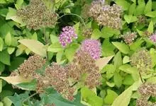 金焰绣线菊,栽培种,为落叶灌木,芽小,芽鳞2-8。单叶互生,具锯齿、缺刻或分裂,稀全缘,羽状脉,或基部具3-5出脉,叶柄短,无托叶。花两性,稀杂性;花序伞形、伞形总状、伞房状或圆锥状;萼筒钟状,萼片5,…全部>>
