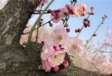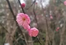 宫粉梅 Rehd.)是蔷薇科、李属植物,梅花品系中真梅系直枝梅类宫粉型,其花复瓣至重瓣,呈或深或浅的红色。落叶乔木,高达10米。树干褐紫色,有纵驳纹,小枝细而无毛,多为绿色。叶广卵形至卵形,…全部>>