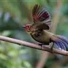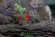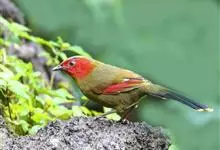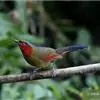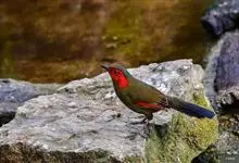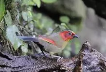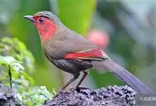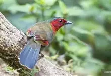 红翅薮鹛是噪眉科、薮鹛属中型鸟类,体长21-24厘米。头顶灰褐色,头侧和颈侧赤红色,上体橄榄褐色,翅上具红色块斑,尾具红色或橙黄色块斑,下体灰色沾褐。虹膜褐色或红色,嘴黑色,脚暗褐色或淡灰褐色。…全部>>