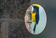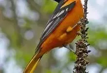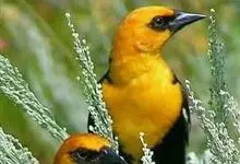 金黄鹂是中型鸣禽。体长24厘米。头全黄色。体羽鲜丽,主要由为黄和黑的颜色组合,雌鸟与幼鸟多具条纹。雄性成鸟眼先、翼及尾基部黑色,其余为鲜亮黄色。雌鸟较暗淡而多绿色。幼鸟偏绿色,下体具细密纵纹。虹膜红…全部>>
