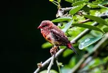 红梅花雀小型鸟类,体长9-10厘米。雄鸟通体朱红色,背、肩、胸等满布白色小斑点,两翅和尾黑褐色均具白色端斑,嘴红色,脚蜡黄色。雌鸟上体淡褐色或赭褐色,翅上中覆羽、大覆羽和内侧飞羽末端具白色斑点,…全部>>