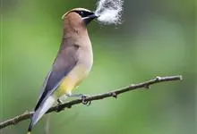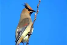 雪松太平鸟体形中等大小,体长约在19厘米左右。该物种雄雌同形同色,太平鸟成鸟额部及面部前端为栗色,向头后部颜色逐渐变浅;额基部、眼先、眼周及眼后部有黑色纹带,颌部亦有黑色区域;枕部黑色,与贯眼的黑色…全部>>
