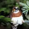 家麻雀:共有13个亚种。是小型鸟类,体长14-16厘米。背栗红色具黑色纵纹,两侧具皮黄色纵纹;颏、喉和上胸黑色,脸颊白色,其余下体白色,翅上具白色带斑。雄鸟与树麻雀的区别在顶冠及尾上覆羽灰色,耳无黑…全部>>