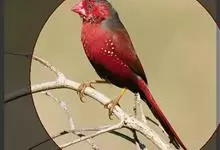 红梅花雀小型鸟类,体长9-10厘米。雄鸟通体朱红色,背、肩、胸等满布白色小斑点,两翅和尾黑褐色均具白色端斑,嘴红色,脚蜡黄色。雌鸟上体淡褐色或赭褐色,翅上中覆羽、大覆羽和内侧飞羽末端具白色斑点,…全部>>