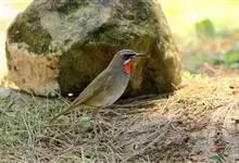 红点颏:是鸟纲、鹟科的鸣禽。又名西伯利亚歌鸲。体长14-17厘米,体重16-27克。雄鸟头部、上体主要为橄榄褐色。眉纹白色。颏部、喉部红色,周围有黑色狭纹。胸部灰色,腹部白色。雌鸟颏部、喉部不呈赤红色,…全部>>