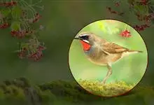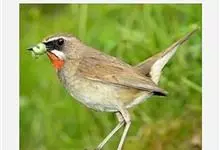 红点颏:是鸟纲、鹟科的鸣禽。又名西伯利亚歌鸲。体长14-17厘米,体重16-27克。雄鸟头部、上体主要为橄榄褐色。眉纹白色。颏部、喉部红色,周围有黑色狭纹。胸部灰色,腹部白色。雌鸟颏部、喉部不呈赤红色,…全部>>