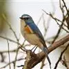 红胁蓝尾鸲俗名:蓝点冈子、蓝尾巴根子、蓝尾杰、蓝尾欧鸲。体型略小而喉白的鸲。特征为橘黄色两胁与白色腹部及臀成对比。雄鸟上体蓝色,眉纹白;亚成鸟及雌鸟褐色,尾蓝。…全部>>