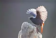 北红尾鸲是雀形目鸫亚科红尾鸲属的一种鸟类。北红尾鸲体长13—15厘米。雄鸟头顶至背石板灰色,下背和两翅黑色,具明显的白色翅斑;腰、尾上覆羽和尾橙棕色;前额基部、头侧、颈侧、颏喉和上胸黑色,…全部>>