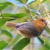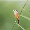 点胸鸦雀是莺科、鸦雀属小型鸟类,体长18-21厘米。头顶至枕橙棕色,嘴橙黄色、短而粗厚,脸皮黄色,耳覆羽和颊后部黑色,眼圈白色。上体棕褐色。颏黑色,其余下体淡皮黄白色,喉和上胸具黑色矢状斑。…全部>>