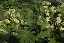 八角金盘 Decne. & Planch.),俗名手树、八角盘、八手等,是五加科八角金盘属的一种常绿灌木。其茎表面光滑无刺。叶片革质浓绿、有光泽,呈掌状,叶柄长花黄白色,花瓣卵形,花萼边缘具小齿。…全部>>