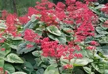 赪桐 Sweet)是唇形科、大青属灌木,高1-4米,叶片圆心形,顶端尖或渐尖,基部心形,边缘有疏短尖齿,表面疏生伏毛,二歧聚伞花序组成顶生,大而开展的圆锥花序,花序的最后侧枝呈总状花序,花萼红色,…全部>>