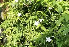 素馨花,木犀科素馨属多年生的攀援灌木植物。攀援灌木,小枝圆柱形,具棱或沟;叶对生,叶轴常具窄翼,小叶片卵形或长卵形;聚伞花序顶生或腋生,花序梗长,苞片线形,花萼无毛,裂片锥状线形,花冠白色,…全部>>