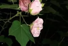 木芙蓉,锦葵科木槿属落叶灌木或小乔木。小枝上有细绒毛;叶片为卵状心形,托叶为披针形,常早落;花单生,花萼为钟形,花冠初为白色或淡红色,后逐渐变为深红色;果实为扁球形,有淡黄色的毛附着。花期8到10月。…全部>>