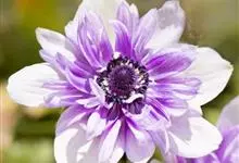 欧洲银莲花:是毛茛科、银莲花属的多年生草本植物。株高25-65厘米,具根状茎。叶为根出叶,3裂,成掌状深裂,具长柄。花茎自叶丛中抽出,花单生与茎顶,花色有白、红、粉、蓝紫色及复色等,花直径4-10厘…全部>>