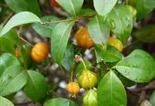 红果仔是桃金娘科番樱桃属的灌木或小乔木。株高可达5米,全株无毛;枝条纤细,稍下垂;叶对生,卵形或卵状披针形,先端渐尖或急尖,基部圆或微心形;花白色,单生或数朵呈聚伞状生于叶腋,…全部>>