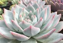芙蓉雪莲是景天科拟石莲花属的植物。由于叶片表面覆盖着一层厚霜粉,通常呈现出白色;日照增多,温差增大后叶缘、叶尖会呈现出粉红色或橙红色。…全部>>