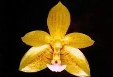 湿唇兰 Pfitz.):茎粗壮,长被宿存的叶鞘所包,上部具3-5枚叶。叶长圆形或倒卵状长圆形。花序1-6个,长达35厘米;疏生5-8朵花;花大,稍肉质,萼片和花瓣黄色带暗紫色斑点;萼片近相似,…全部>>