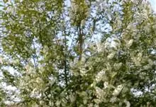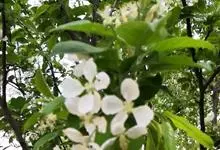 稠李是蔷薇科、李属的乔木。株高达15米;幼枝被绒毛,冬芽无毛或鳞片边缘有睫毛;叶椭圆形、长圆形或长圆状倒卵形,基部圆或宽楔形,有不规则锐锯齿,花序梗和花梗无毛,萼筒钟状,萼片三角状卵形,花瓣白色,…全部>>