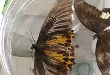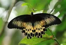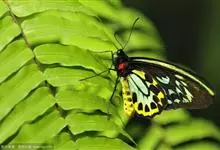 金裳凤蝶是凤蝶科、裳凤蝶属的动物。金裳凤蝶身体呈黑色,头、颈和胸侧有红毛,腹部有黑黄两色相间条纹,雄蝶前翅黑色,具黑天鹅绒光泽,各脉两侧灰白色,后翅金黄色,各室外缘有等腰三角形黑斑1枚,斑内侧有晕,…全部>>