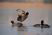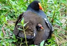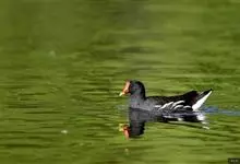 黑水鸡:是鹤形目、秧鸡科的鸟类,共有12个亚种。中型涉禽,体长24-35厘米。嘴长度适中,鼻孔狭长;头具额甲,后缘圆钝;嘴和额甲色彩鲜艳。翅圆形,第2枚初级飞羽最长,或第2枚和第3枚初级飞羽等长,…全部>>