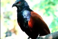 褐翅鸦鹃,是鹃形目鸦鹃科鸦鹃属的鸟类。褐翅鸦鹃的身体为黑色;头颈和胸带蓝紫色金属光泽并具黑亮的羽干纹,下胸至腹部泛金属绿光泽;两翼和肩部为棕栗色,外侧飞羽具暗色羽端,尾羽闪铜绿色光泽;虹膜赤红色,…全部>>