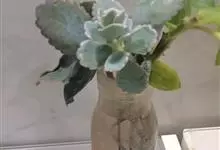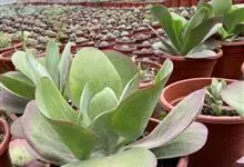 唐印为景天科伽蓝菜属的多年生肉质草本植物。植株中型,株高50厘米,宽20厘米,多分枝;叶片肉质,对生,卵形,全缘,先端钝圆,叶片淡绿色至灰绿色,表面被有厚厚的白粉,光照充足时,叶缘呈红色;圆锥花序,…全部>>