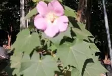 海滨木槿是锦葵科木槿属植物,落叶小乔木,株高3-5米,胸径20厘米,扁球形树冠,枝叶繁盛。厚纸质单叶互生,扁圆形、倒卵形或宽倒卵形,先端钝近平,具短突尖,基部圆形或浅心形,叶缘中上部具细圆齿,…全部>>