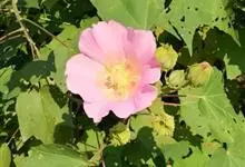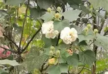 木芙蓉,锦葵科木槿属落叶灌木或小乔木。小枝上有细绒毛;叶片为卵状心形,托叶为披针形,常早落;花单生,花萼为钟形,花冠初为白色或淡红色,后逐渐变为深红色;果实为扁球形,有淡黄色的毛附着。花期8到10月。…全部>>