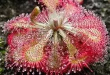 茅膏菜茅膏菜科茅膏菜属多年生草本植物,高32厘米。鳞茎状球茎紫色地上常直无毛,茎顶多分枝;基生叶密集成近一轮,叶片半月形;聚伞花序生于枝顶,白色或红色,种子椭圆形;花果期6-9月。茅膏菜为变种,…全部>>