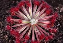 茅膏菜茅膏菜科茅膏菜属多年生草本植物,高32厘米。鳞茎状球茎紫色地上常直无毛,茎顶多分枝;基生叶密集成近一轮,叶片半月形;聚伞花序生于枝顶,白色或红色,种子椭圆形;花果期6-9月。茅膏菜为变种,…全部>>