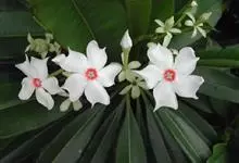 海杧果是夹竹桃科海杧果属的乔木。高4~8米;树皮为灰褐色;全株有丰富乳汁;叶厚纸质,呈倒卵状长圆形或倒卵状披针形,叶面为深绿色,叶背为浅绿色;花为白色,有芳香;核果双生或单个,呈阔卵形或球形,…全部>>