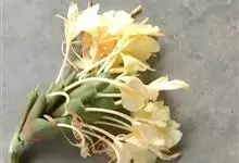 黄姜花:姜科,姜花属多年生草本草本芳香花卉,秋冬季开花,穗状花序,长圆形;苞片长椭圆形,覆瓦状排列,每一苞片内有花3-5朵;花深黄色,形似蝴蝶,气味芬芳纯正,沁人心脾;唇瓣倒心形,黄色,…全部>>