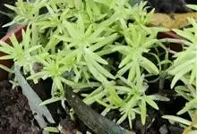 垂盆草别名石头菜、狗牙瓣、豆瓣菜等,为景天科景天属的多年生草本植物。不育枝及花茎细,匍匐而节上生根,直到花序之下;3叶轮生,叶倒披针形至长圆形,先端近急尖,基部急狭,有距;聚伞花序,花无梗,…全部>>