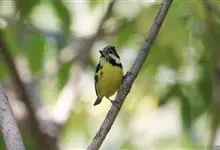 火冠雀又名火帽雀,是雀形目山雀科火冠雀属小型鸟类。体长约10厘米,雄鸟繁殖期前额鲜红色,头等及耳羽暗黄色,眉纹色浅不显著;喉部橙红色,逐渐过渡至胸部的鲜黄色;背部黄绿色,小翼羽黑色,…全部>>