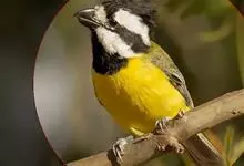 黄腹山雀是雀形目山雀科山雀属鸟类。虹膜褐色或暗褐色;嘴蓝黑色或灰蓝黑色;头、喉胸斑黑色,颊斑、颈后斑白色;上体蓝灰色,腰银白色;翼具两排白色点斑;下胸、腹鲜黄色;尾黑色,…全部>>