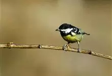 黄腹山雀是雀形目山雀科山雀属鸟类。虹膜褐色或暗褐色;嘴蓝黑色或灰蓝黑色;头、喉胸斑黑色,颊斑、颈后斑白色;上体蓝灰色,腰银白色;翼具两排白色点斑;下胸、腹鲜黄色;尾黑色,…全部>>